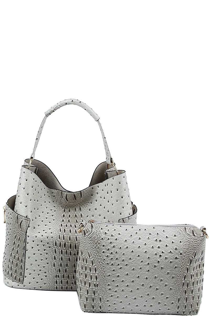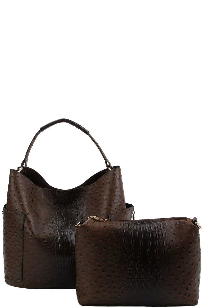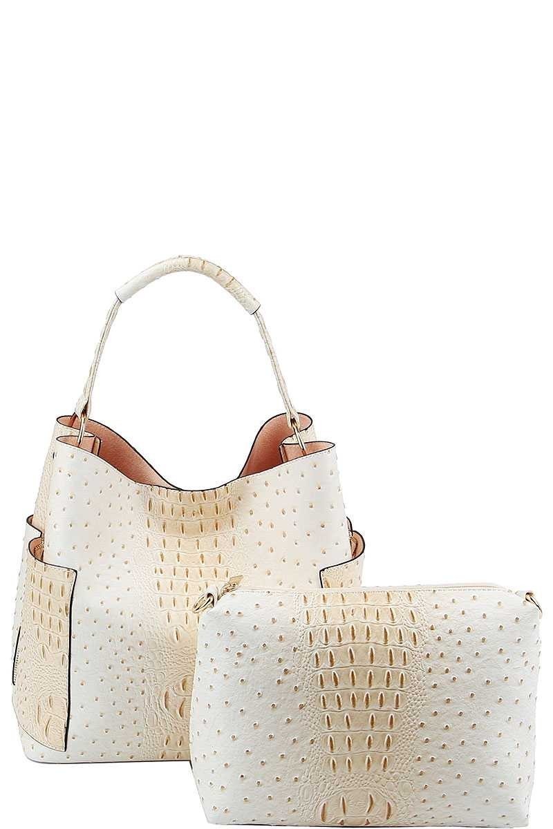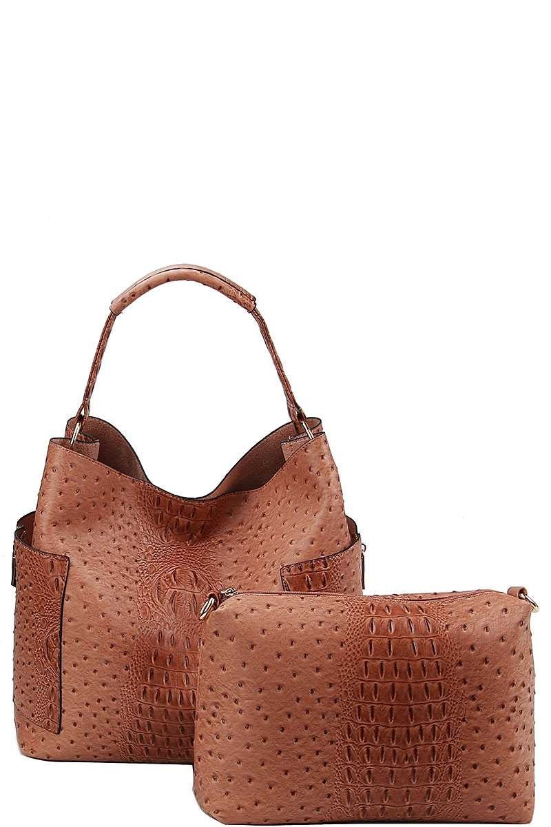 2 IN 1 CROC TEXTURED SATCHEL BAG