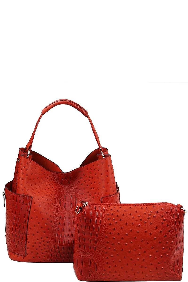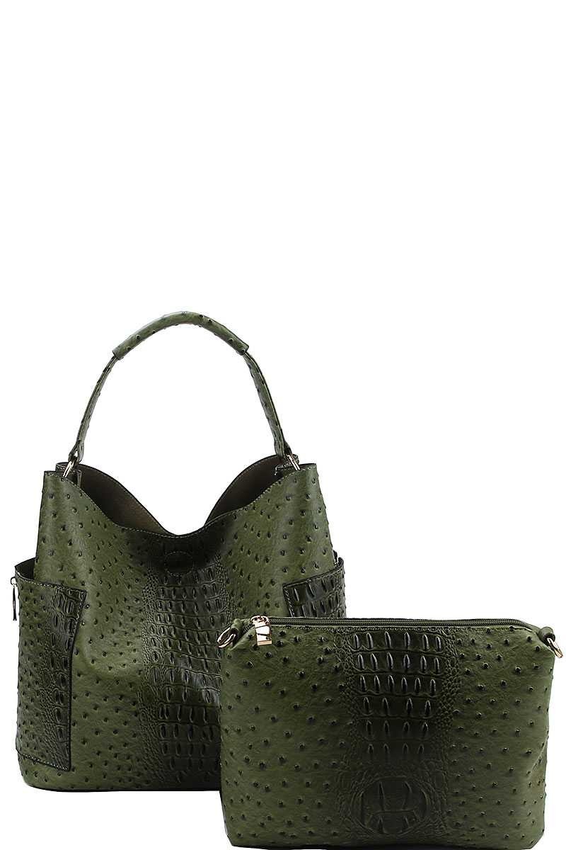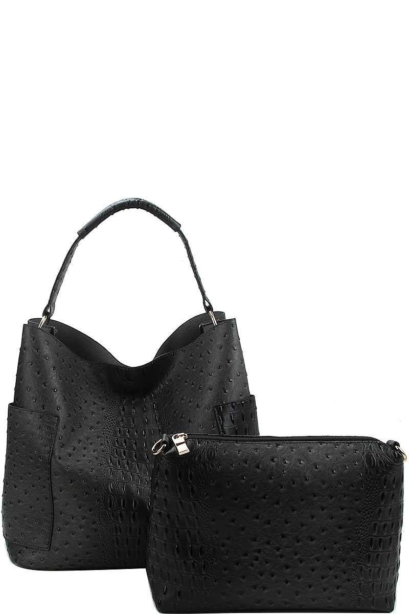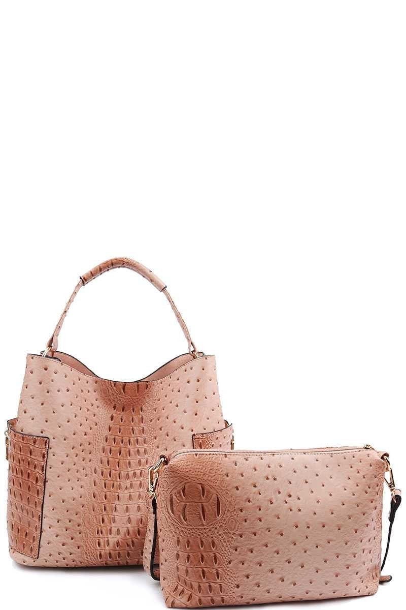 2 IN 1 CROC TEXTURED SATCHEL BAG
