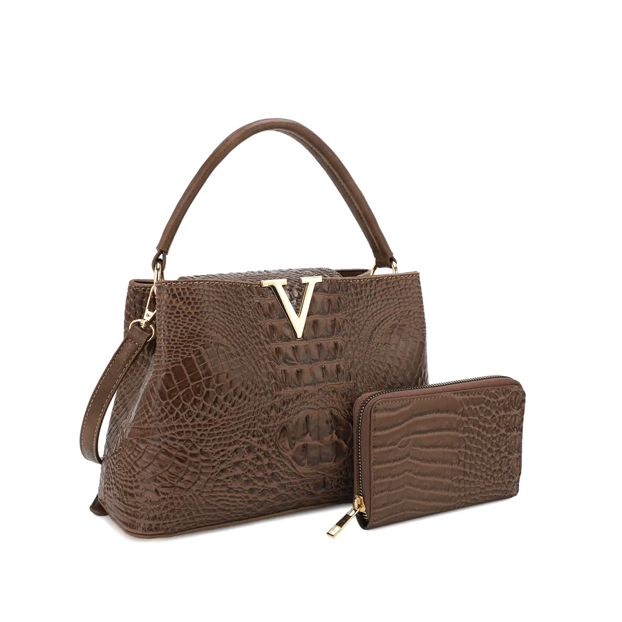 - 2- In1 Croc -V- Emblem Satchel - with Wallet