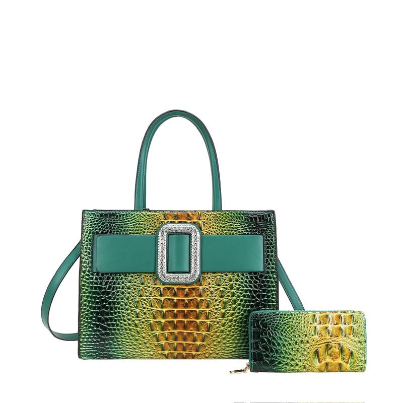 - 2-IN-1 Crocodile Rhinestone Belt Buckle Satchel + Wallet
