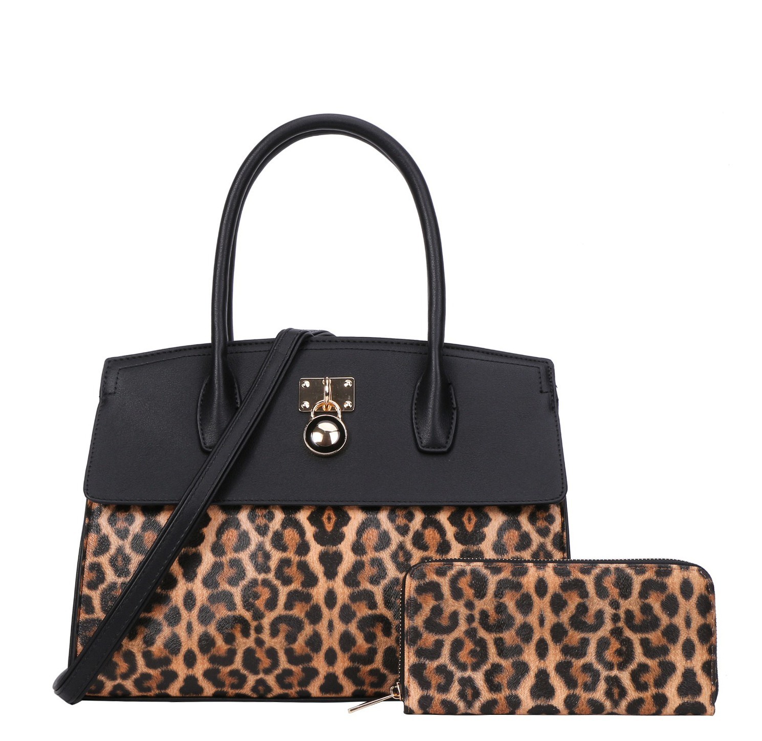 2 in 1 Leopard Print Padlock Satchel