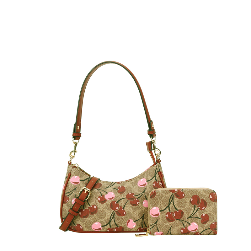 2-IN-1 Oval Cherry Print Satchel Wallet Set