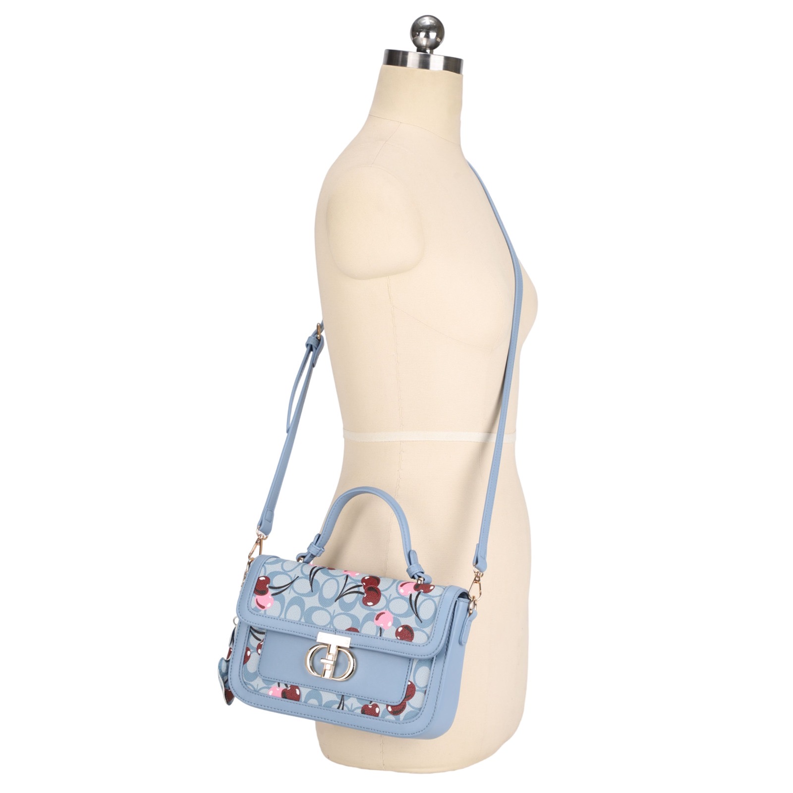 2- in-1 Oval Chery Print Monogram Satchel Set + KeyChain Charming & Wallet