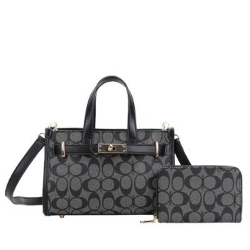2-IN-1 Oval Print Pad-Locked Satchel W Wallet Set