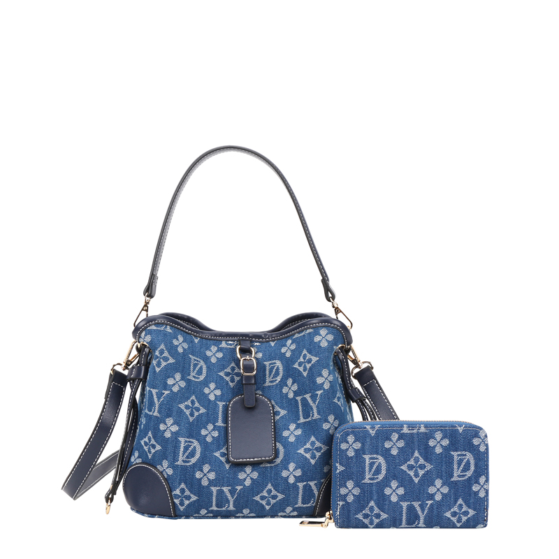 2-in-1 Printed Denim Shoulder Bag w Wallet