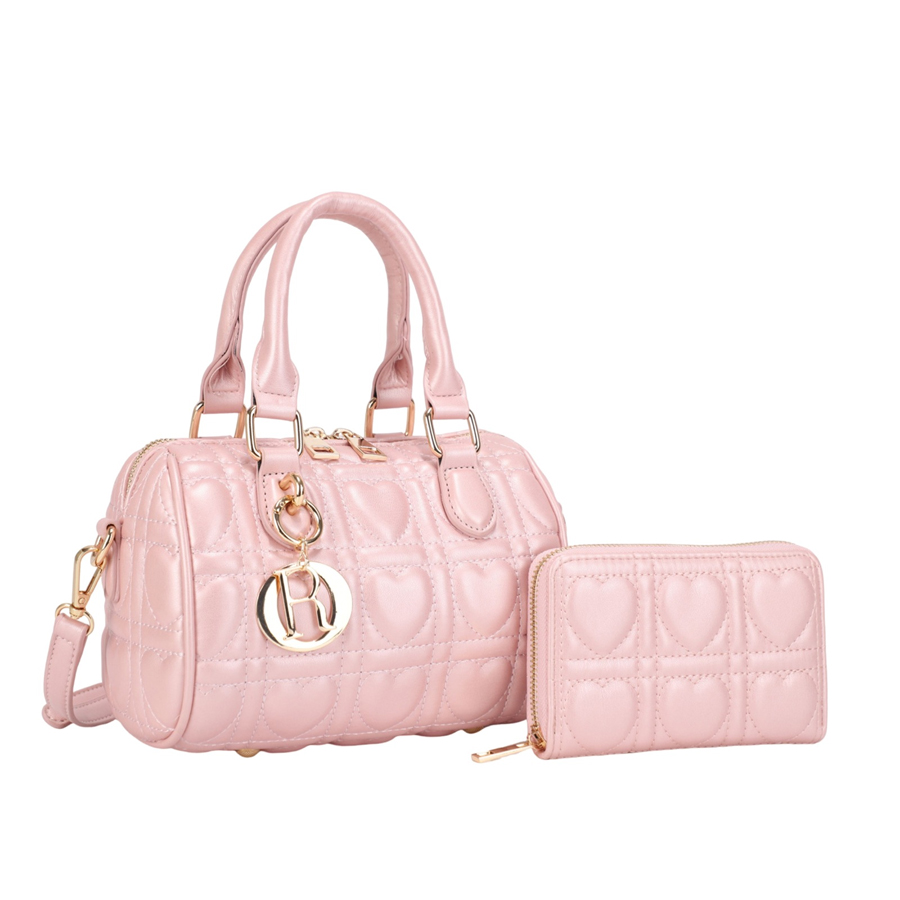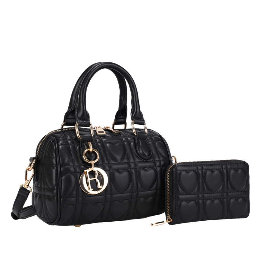 - 2-in-1 Quilted Heart Design Boston Satchel With Wallet