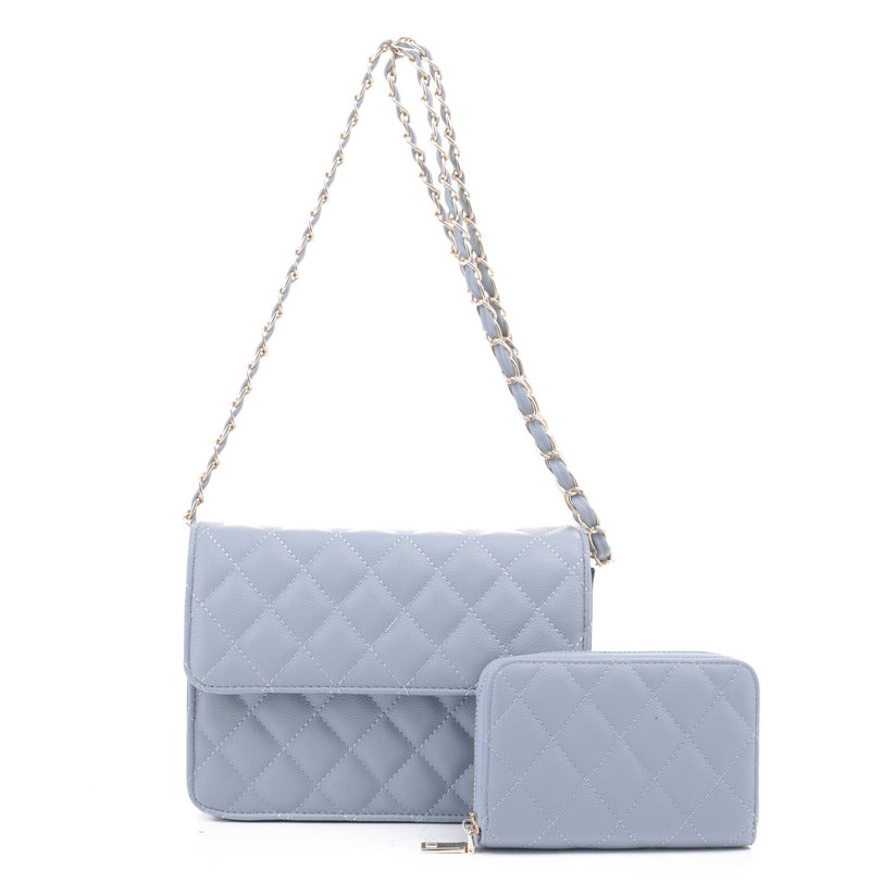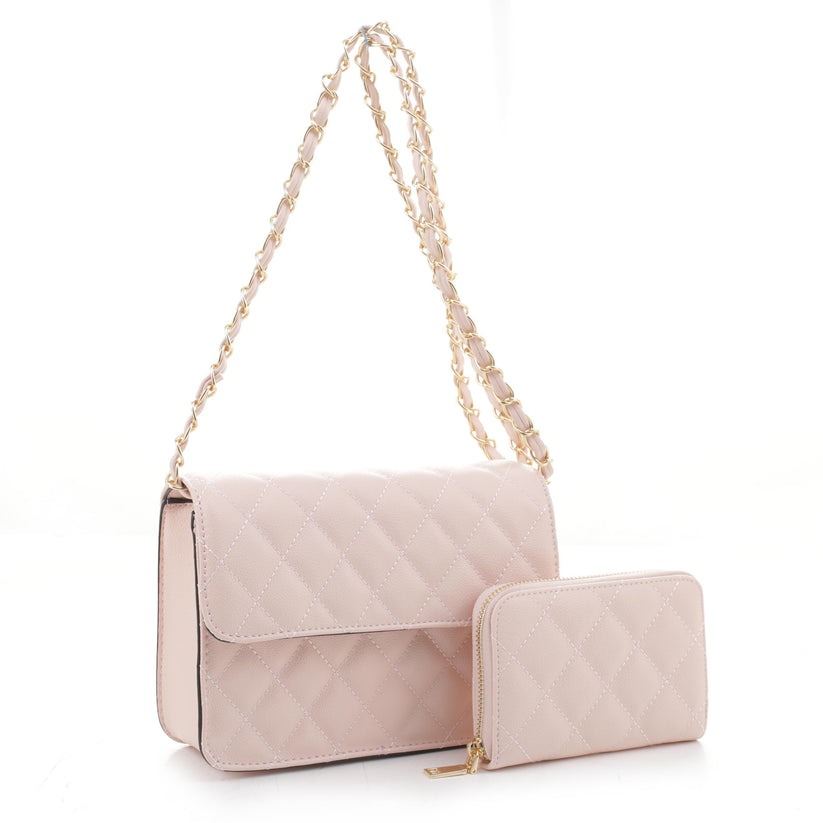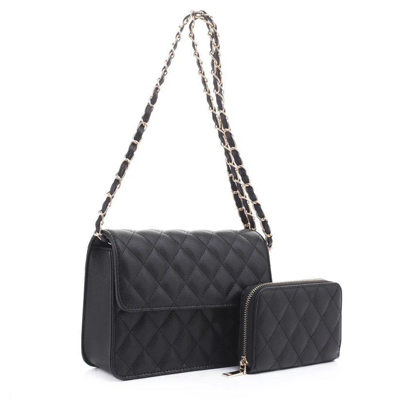 2 -in-1 Quilted Shoulder Bag / Crossbody Set + Wallet