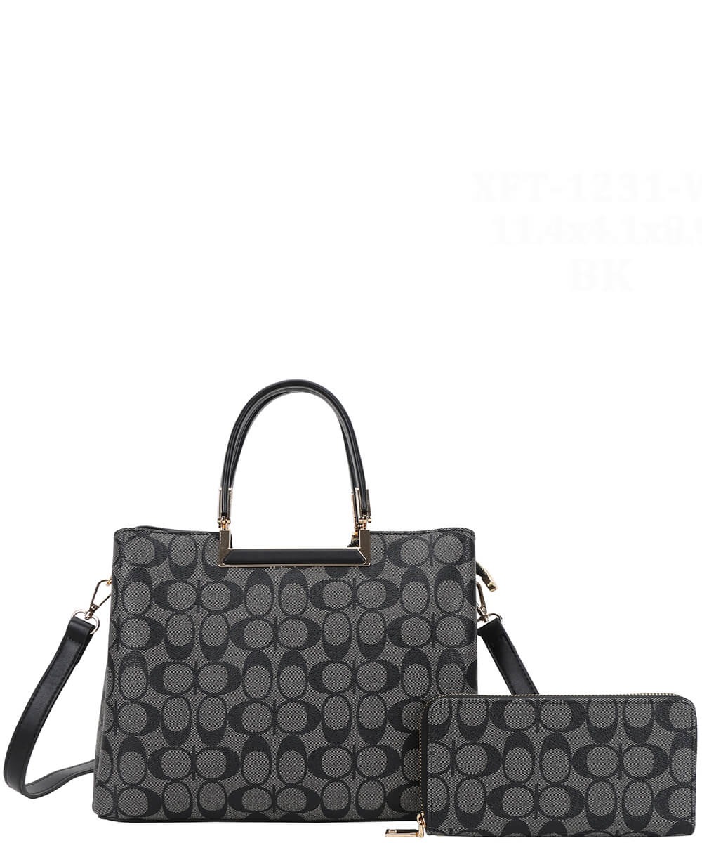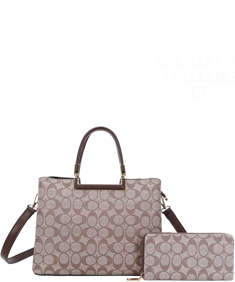 2-IN1 Oval Print Round Handle Satchel W Wallet Set