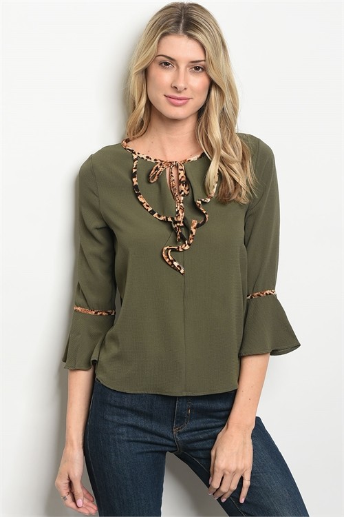 3/4 Sleeve Ruffled Leopard Print Blouse - Pack of 6 Pieces