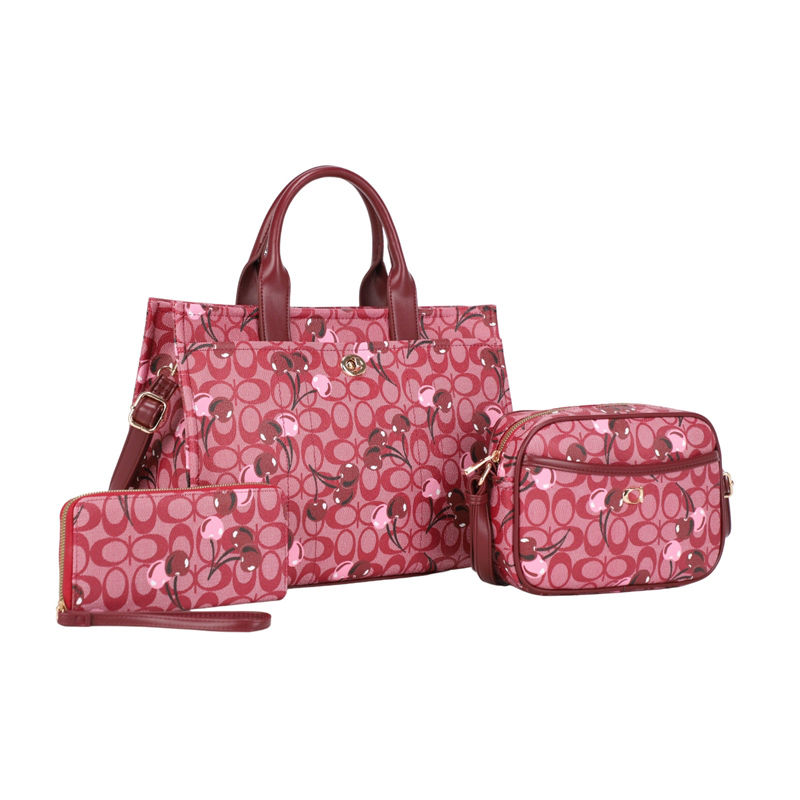 3-IN-1 Oval-Chery Monogram Print Satchel With Crossbody & Wallet Set