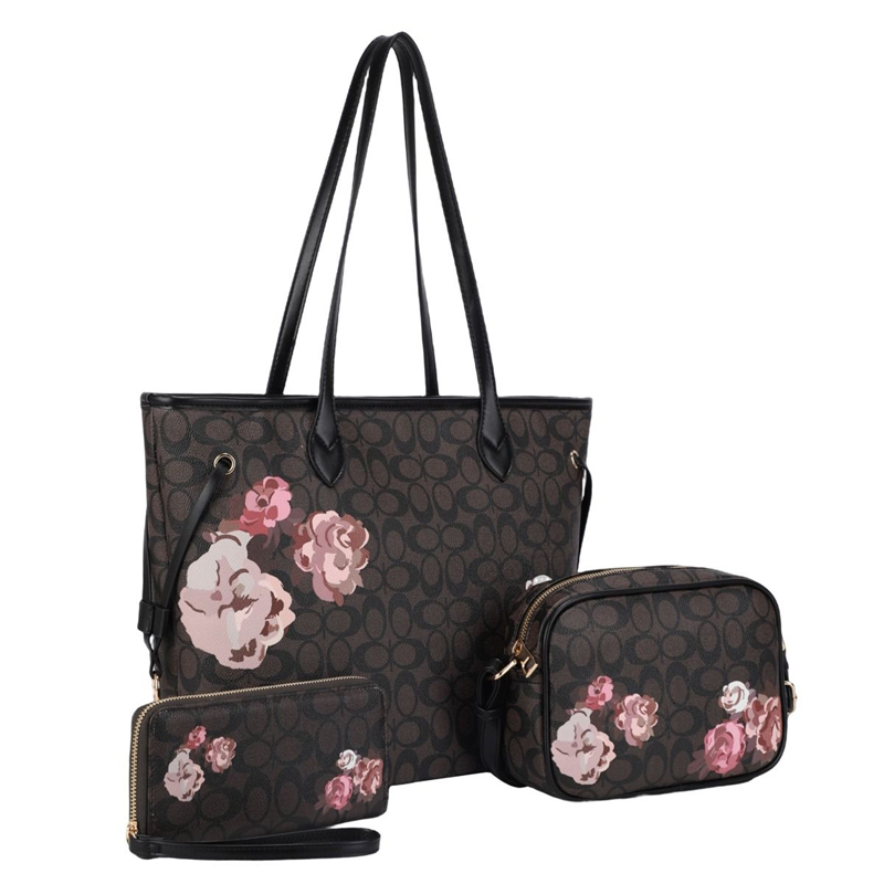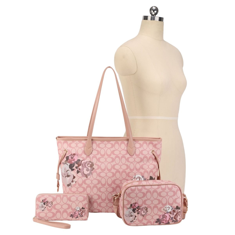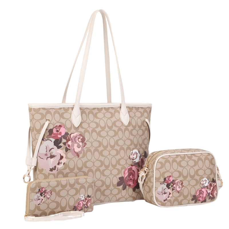 - 3-in-1 Oval ROSE GLAM Monogram Handbag / Crossbody Wallet Set