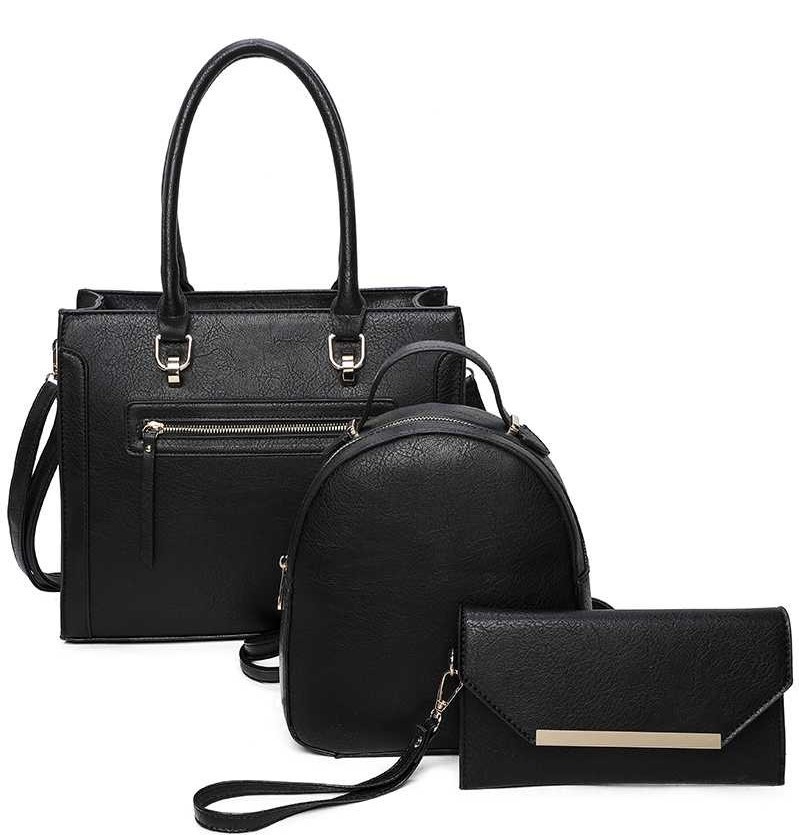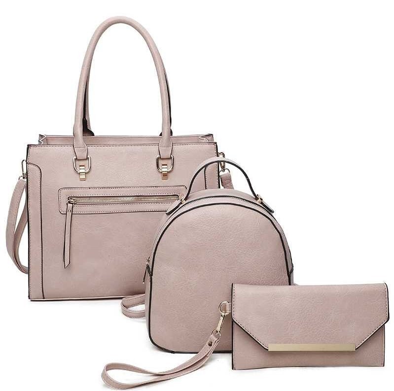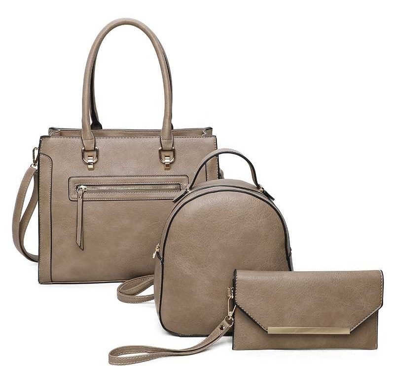 - 3 IN 1 SMOOTH LEATHER ZIPPER TOTE BAG BACKPACK AND CLUTCH SET FB-LF-21022-T3