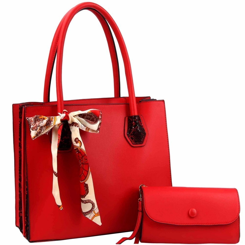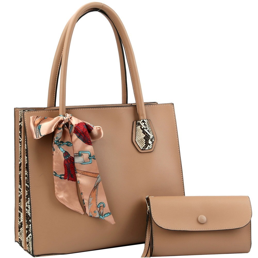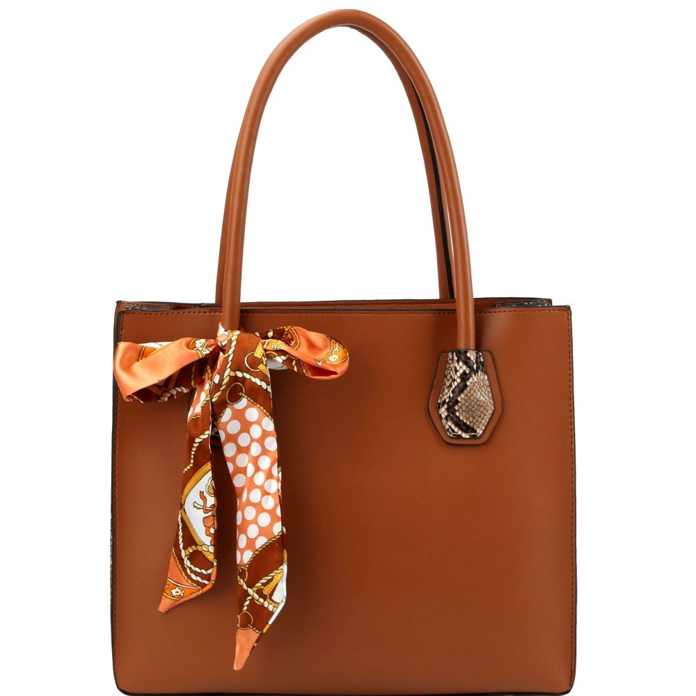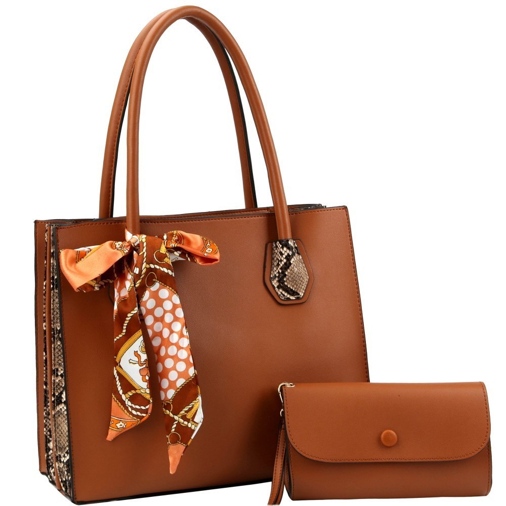 Accordion Side Scarf Accent Snake Print Satchel Clutch SET