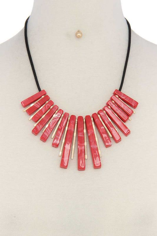 ACETATE FASHION STONE DANGLED SHORT NECKLACE SET