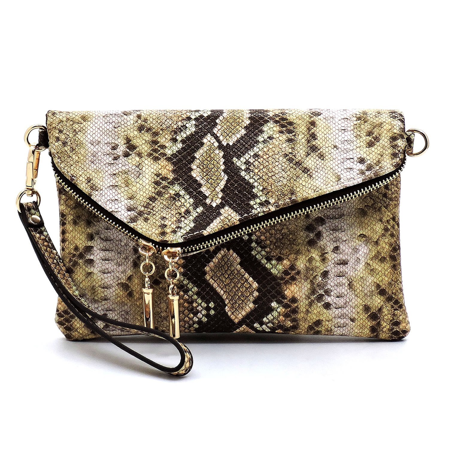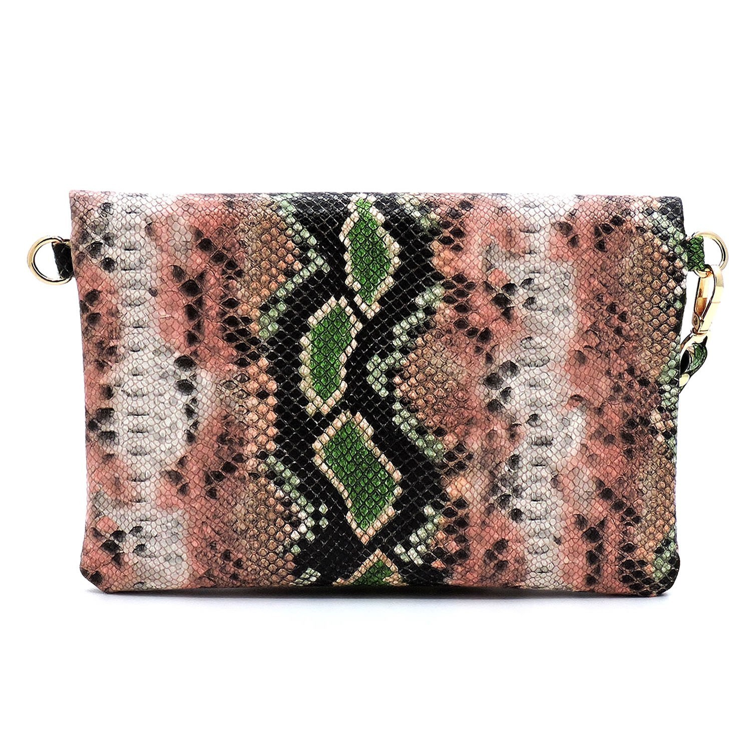 - Asymmetrical Multi-Color Snake Print Flap Clutch Shoulder Bag FW-SLM023