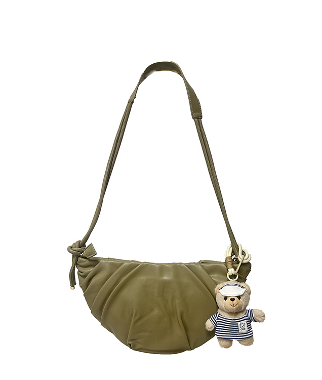 - Bag Charm Pleated Half Moon Crossbody Bag