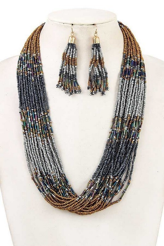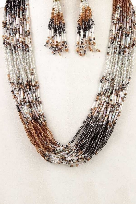 BEADED MULTI ROW SEEDS NECKLACE SET