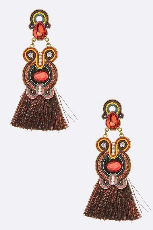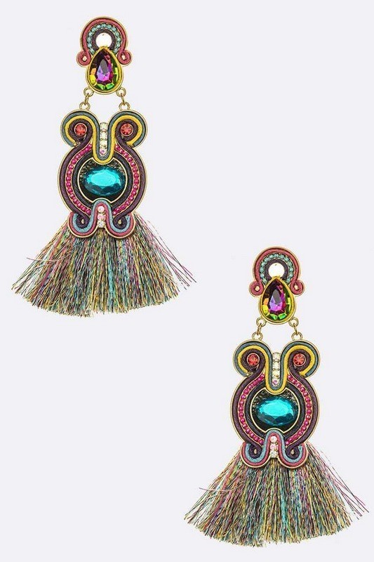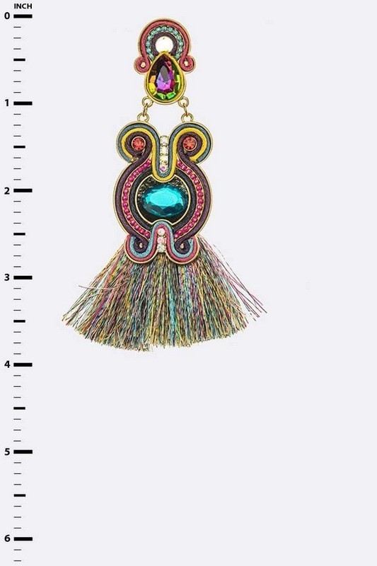 • Bejeweled Metallic Tassel Statement Earrings LA-JCE2533