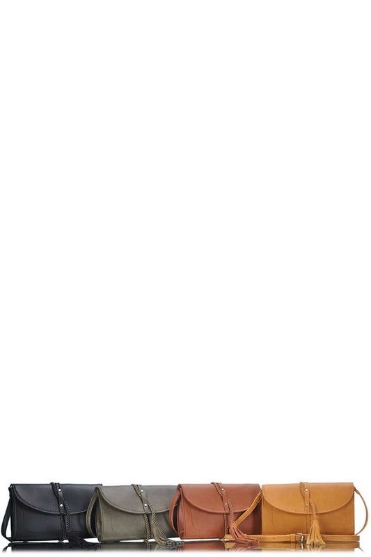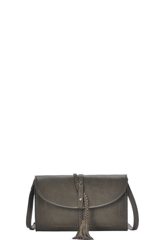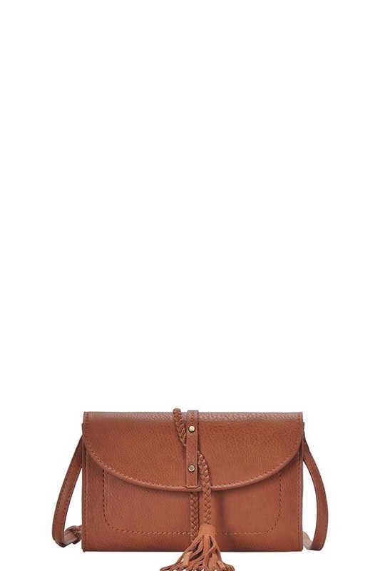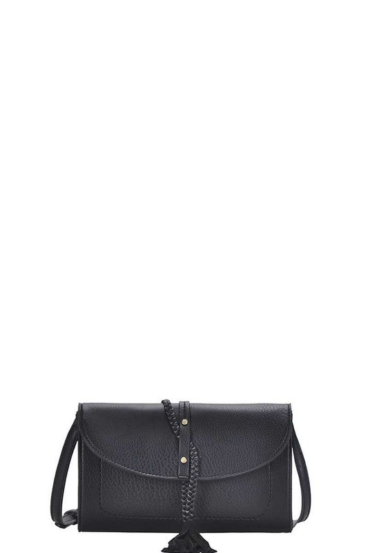 BRAIDED TASSEL ACCENTED CROSS BODY BAG