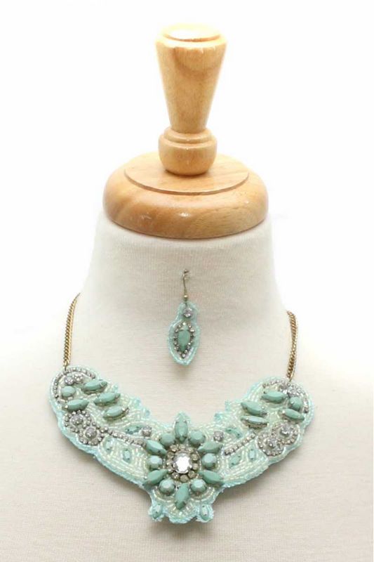 CHIC BEADS AND CRYSTALS FASHION NECKLACE AND EARRING SET