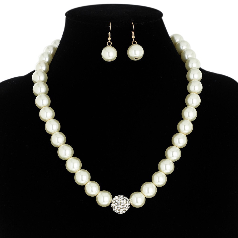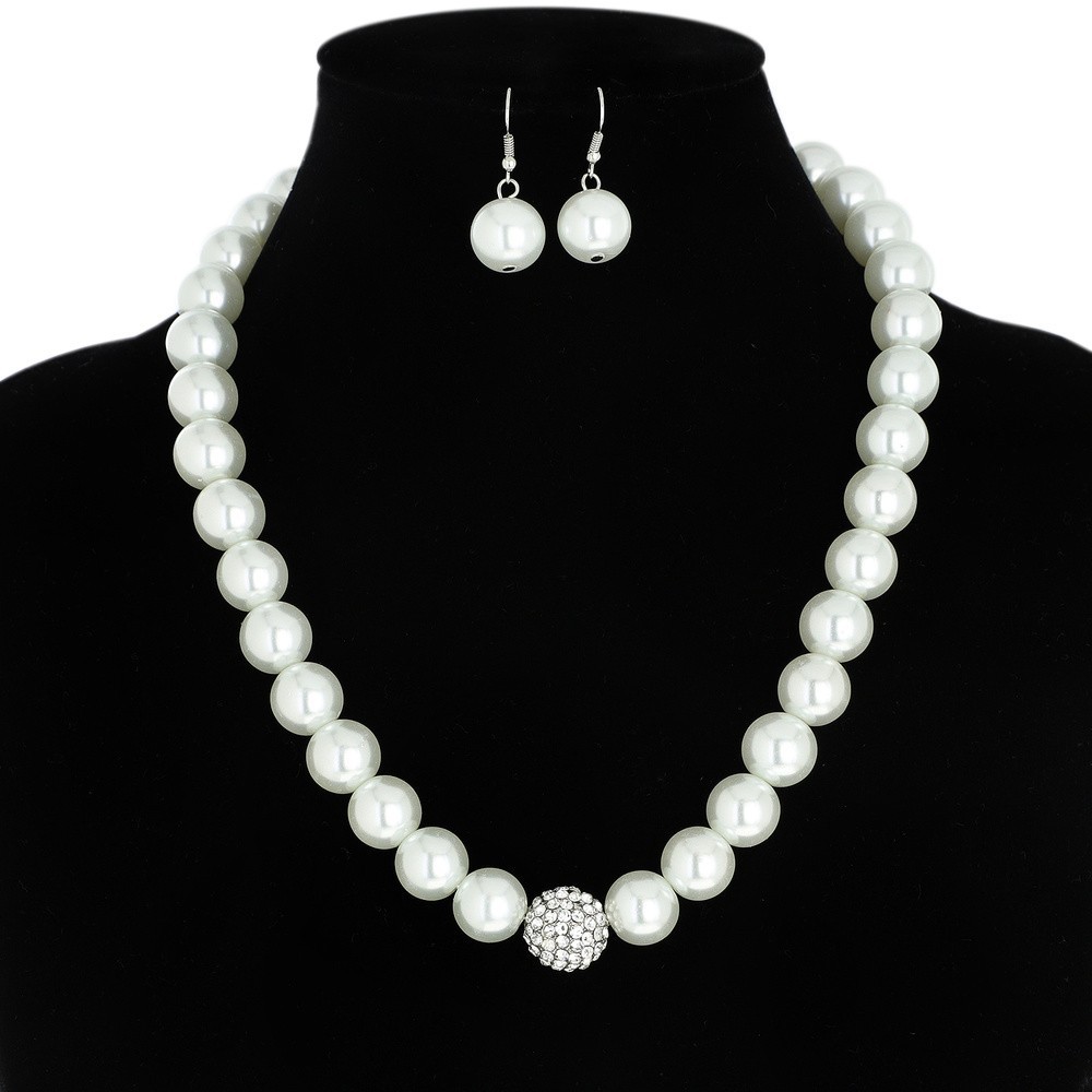 • Chic Pearl & Crystal Rhinestone Ball Necklace Earrings Set SLN4587