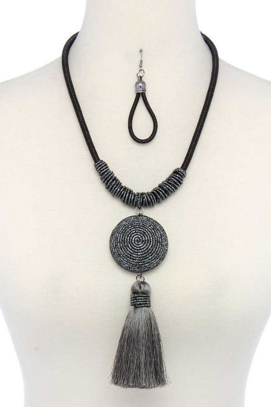 CHIC SPIRAL TASSEL PENDANT METALLIC THREAD FASHION NECKLACE