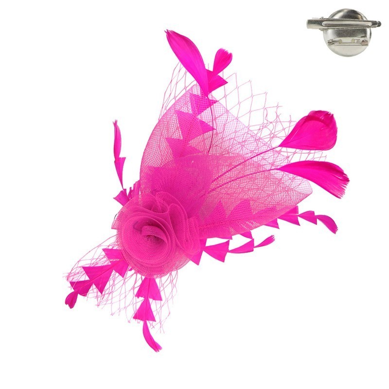 Classy Fascinator with Mesh Flower With Netting And Spikey Feather Pin Brooch And Hair Clip