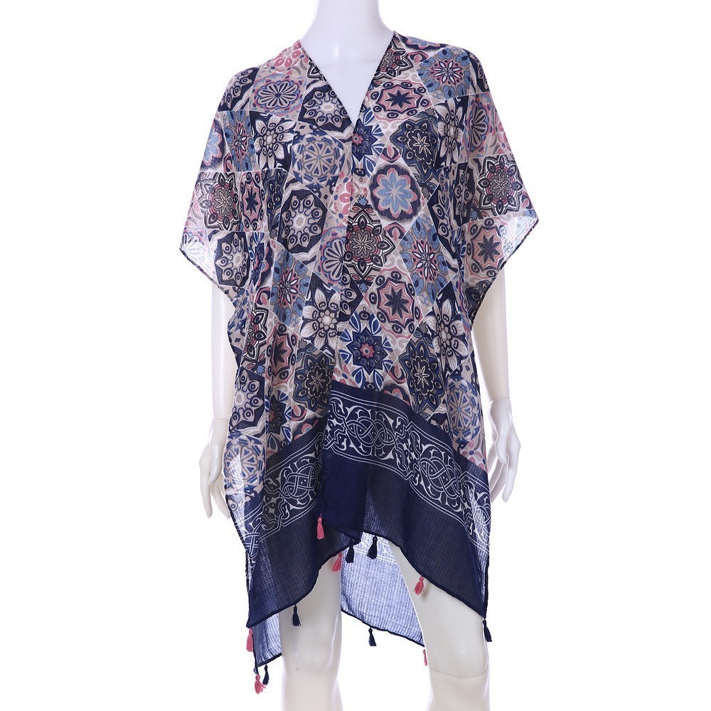 Classy Lightweight Lush Kaleidoscope Print Kimono w/ Tassels SLS2056