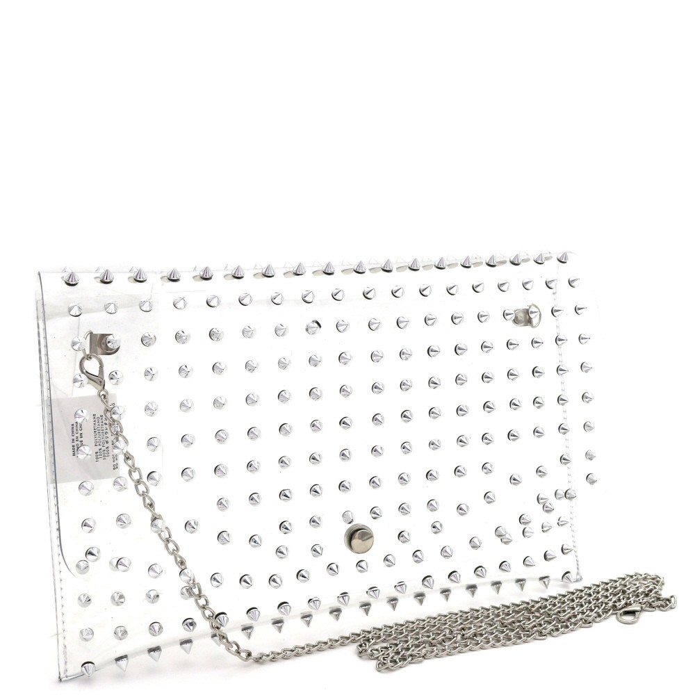 - Clear Spike Stud Accent Transparent Large Envelope Clutch MH-HPC3053