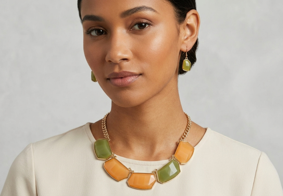 - Epoxy Resin Agate Gemstone Adjustable Bib Necklace and Earring Set