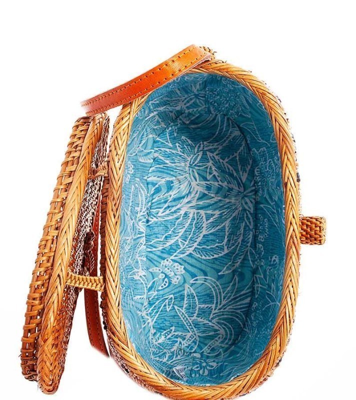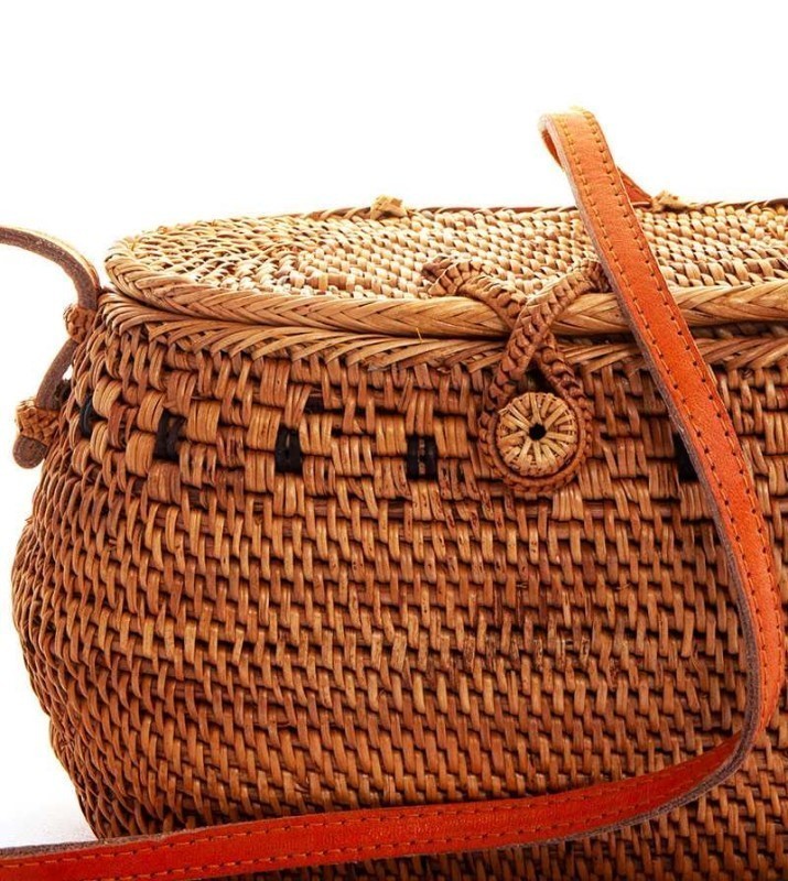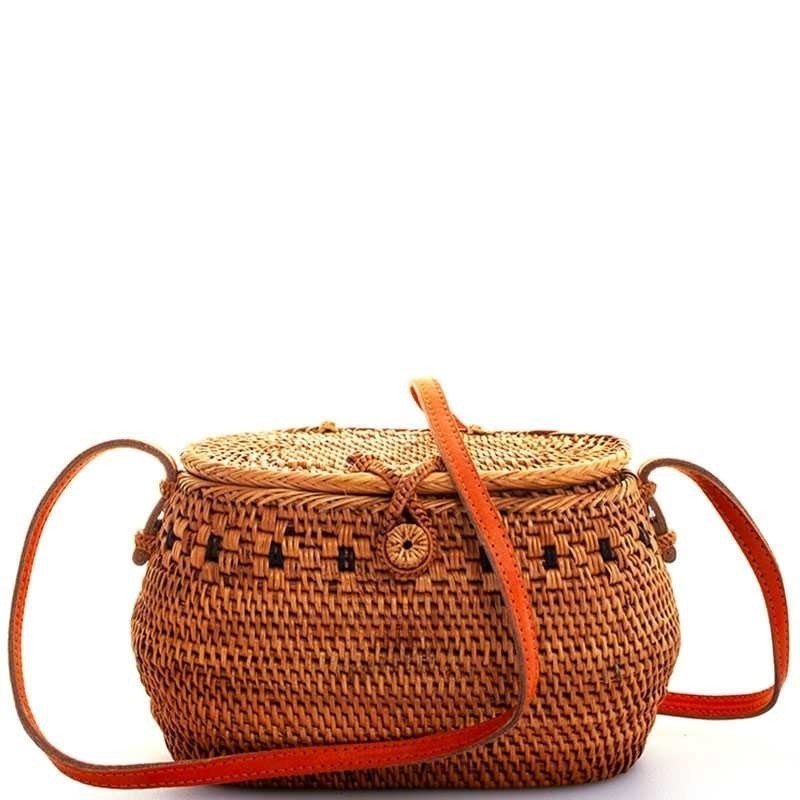 • CUTE NATURAL STRAW WOVEN BUCKET CROSSBODY BAG JY-BALI-17
