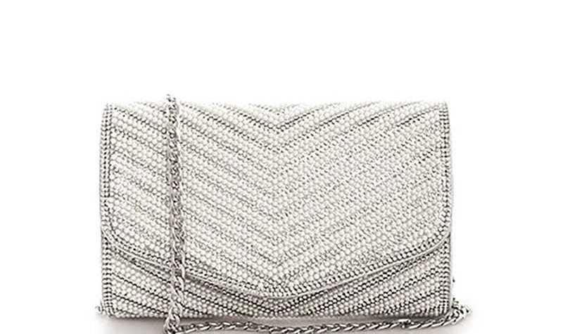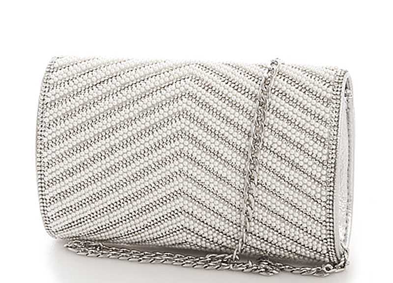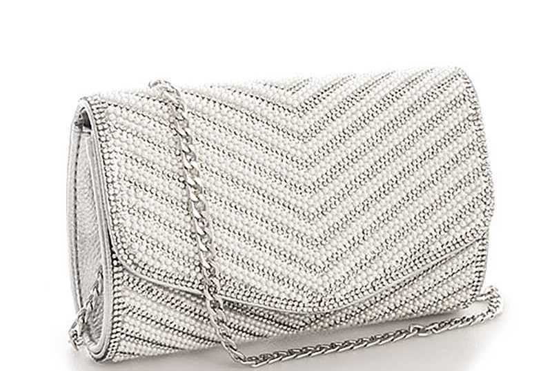DESIGNER CUTE PEARL AND RHINESTONE PARTY CLUTCH WITH CHAIN