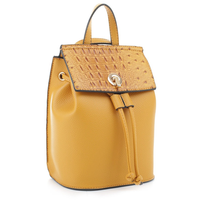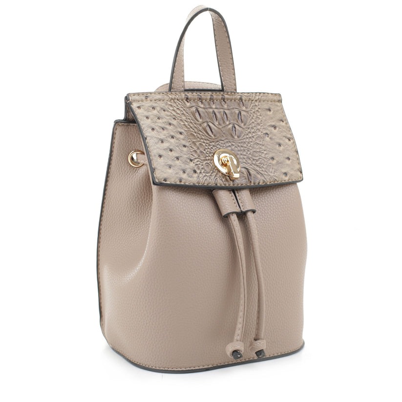 - Ostrich Accent Drawstring Flap Backpack