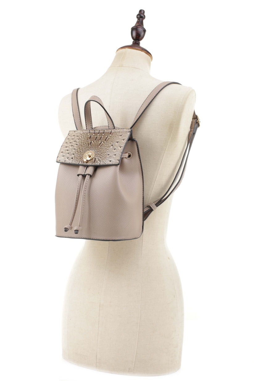 - Draw String Two-Way Ostrich Combo Satchel / Backpack