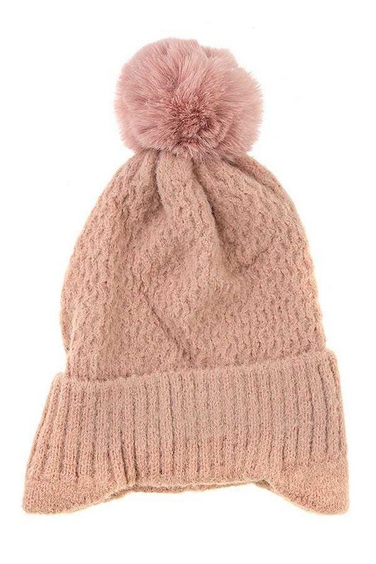 EAR FLAP WINTER POMPOM BEANIE