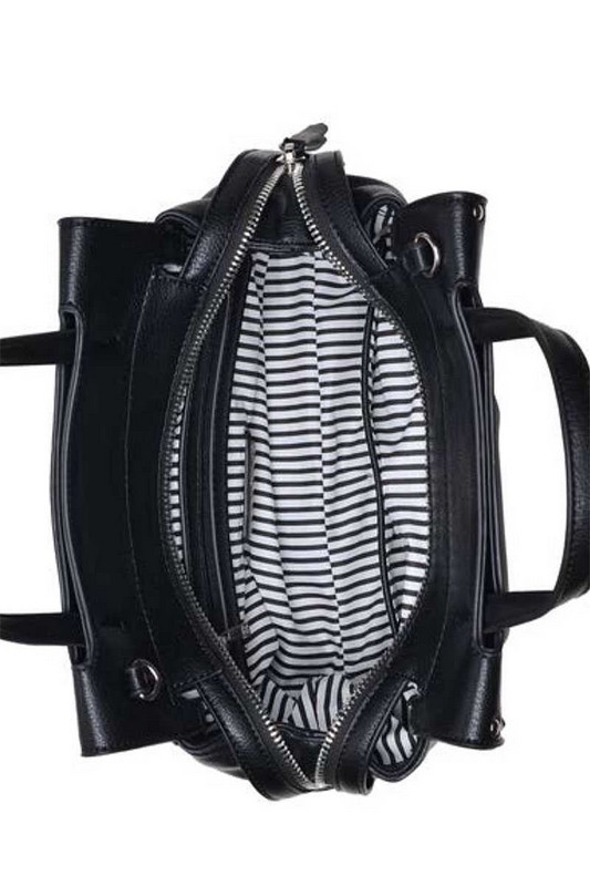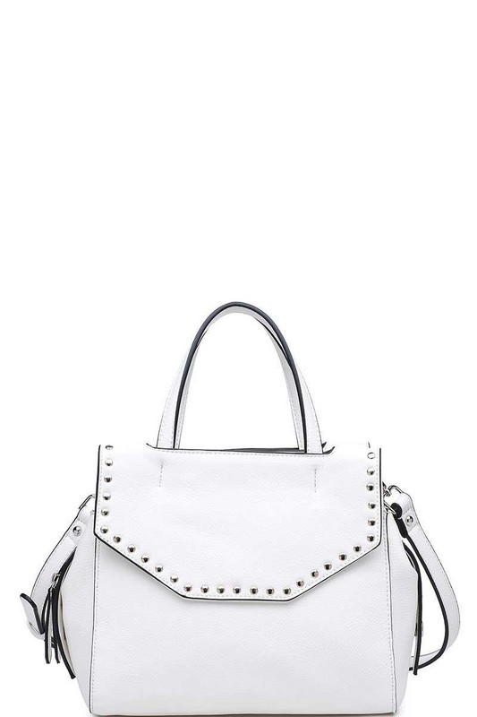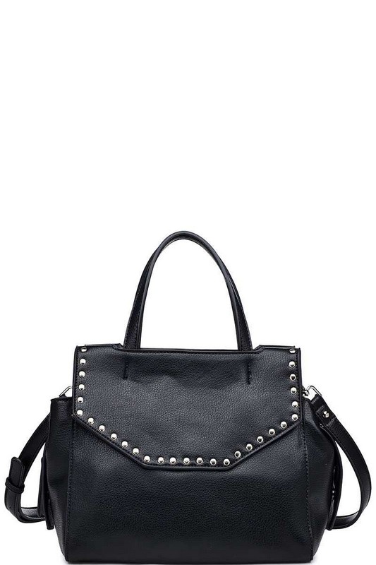- Exterior Details: Stud details, front & back snap-flap pockets Inside