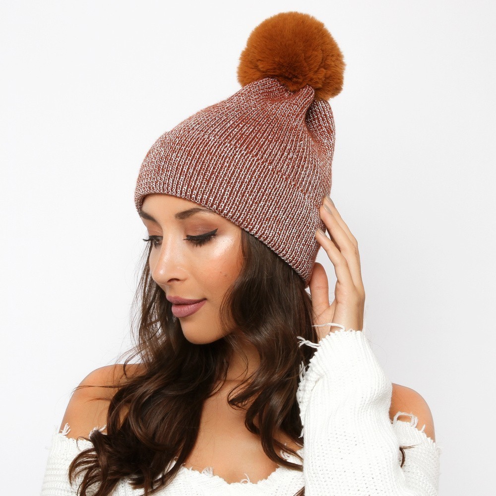 FASHION ACRYLIC RIBBED BEANIE W/ POM POM