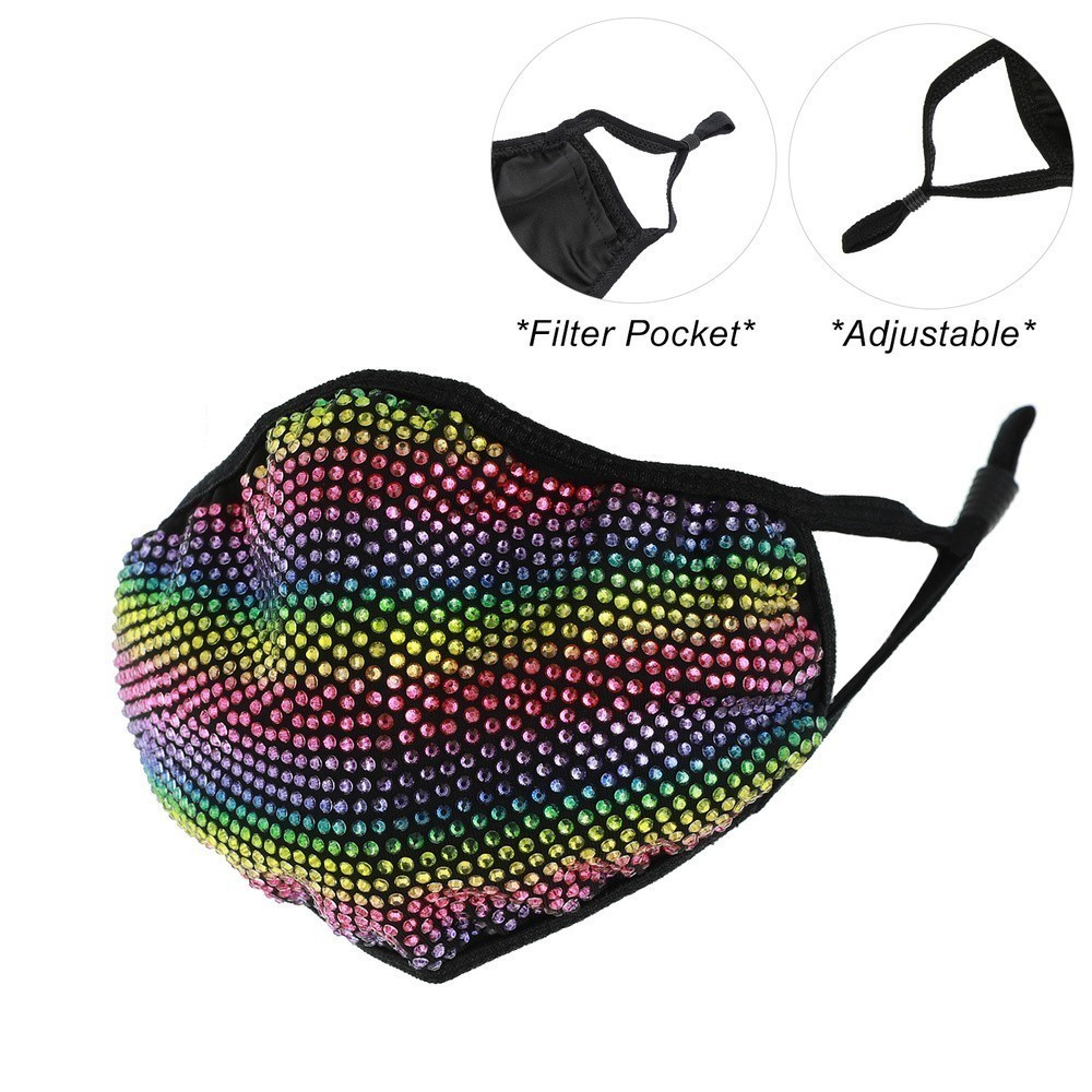- MULTI COLOR RHINESTONE BLING MASK W/ FILTER POCKET & ADJUSTABLE ELASTIC EAR STRAP