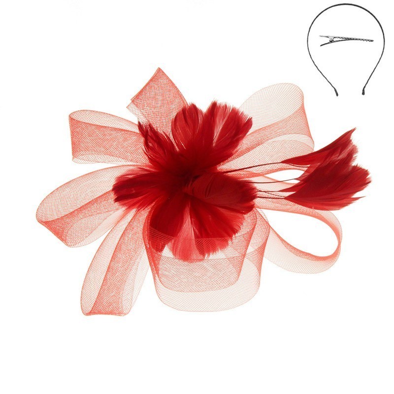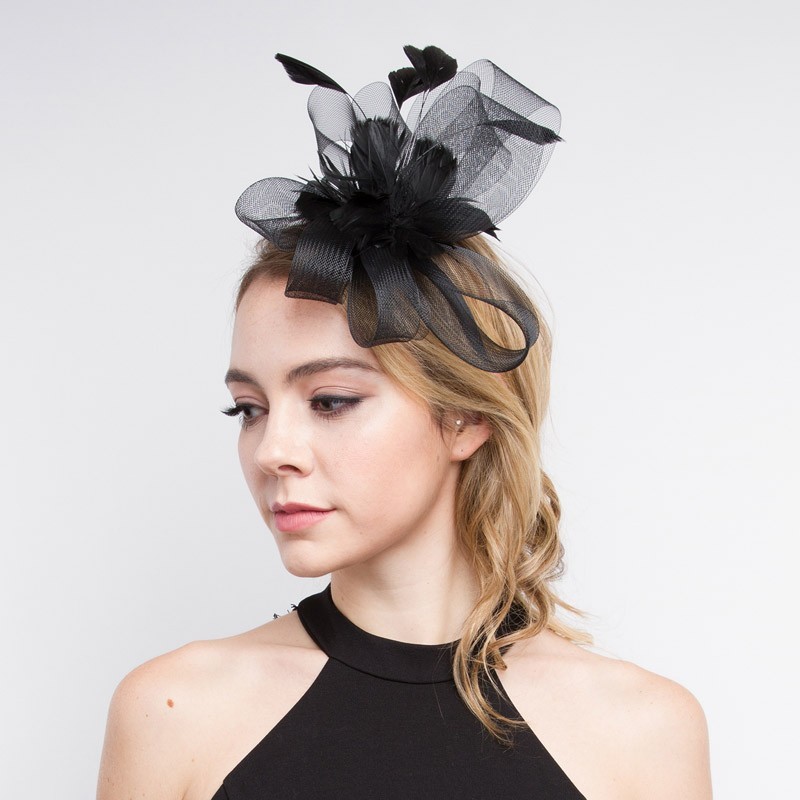 Fashionable Headband/pin with Loopy Mesh W/feather