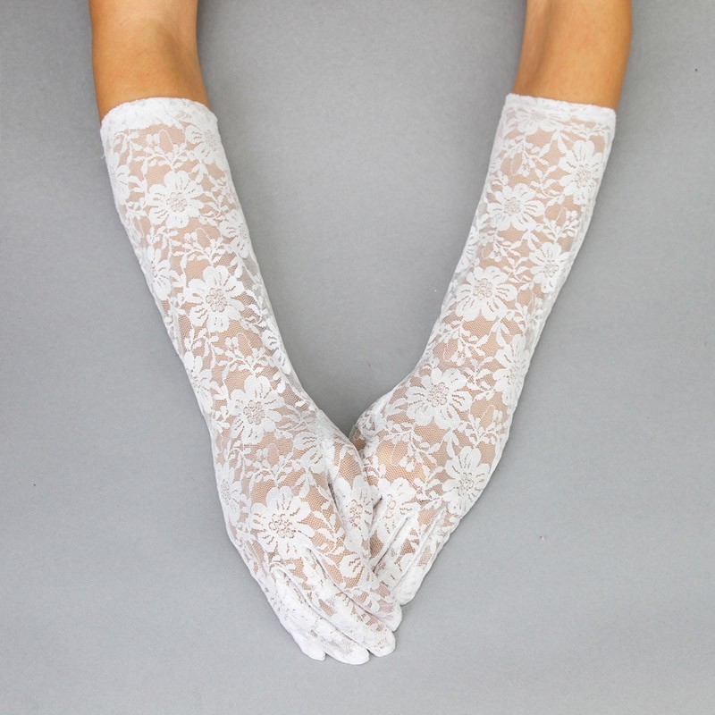 FASHIONABLE LACE LONG GLOVE W/ FLOWERS