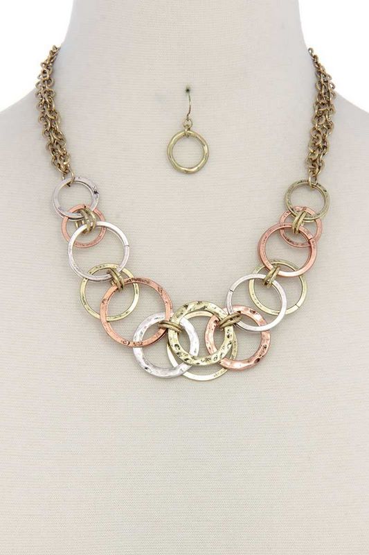 FASHIONABLE MULTI TONE CIRCLE LINKS STATEMENT NECKLACE SET