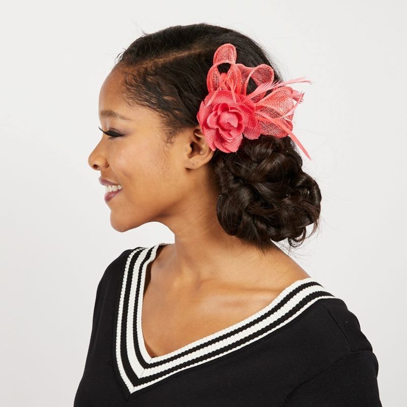 - Fashionable ROSE and FEATHERS PIN FASCINATOR Pin