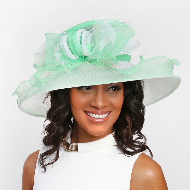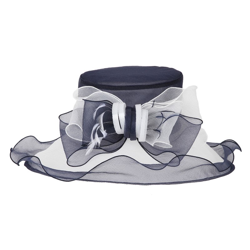 - Ladies Organza Hat Large Brim Bow and Ruffles Decor Two Tone MEZ2002.