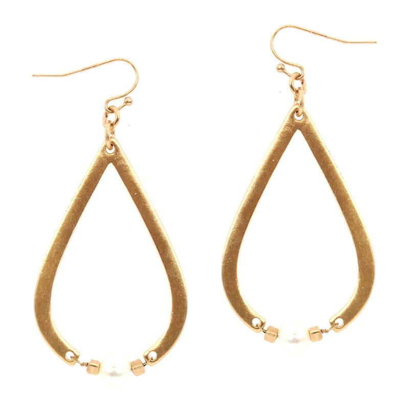 Freshwater Pearl Metal Open-cut Teardrop Earring MH-XE2211
