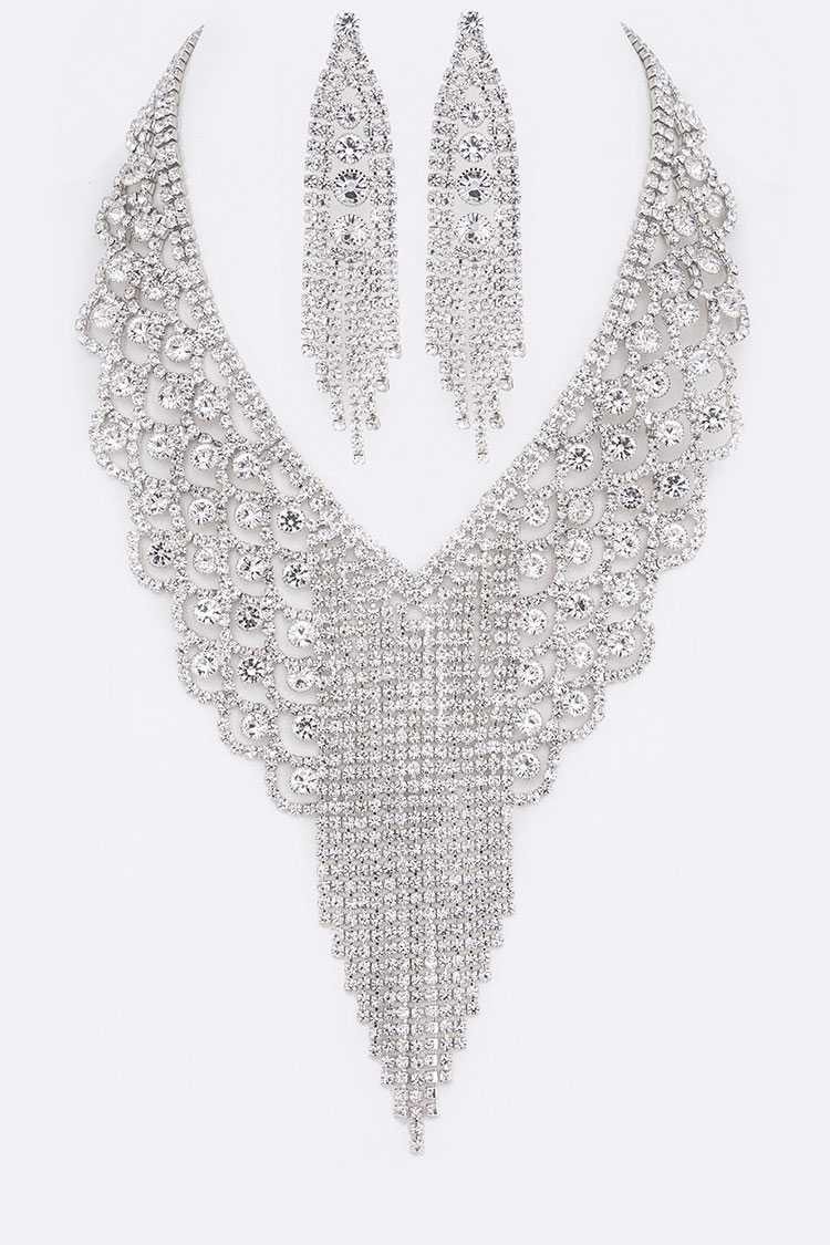 • Fringe Chain Rhinestone Statement Necklace Set  LA-SN37870