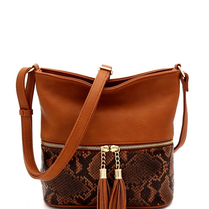 FRONT ZIPPER POCKET SNAKE PRINT CROSS BODY