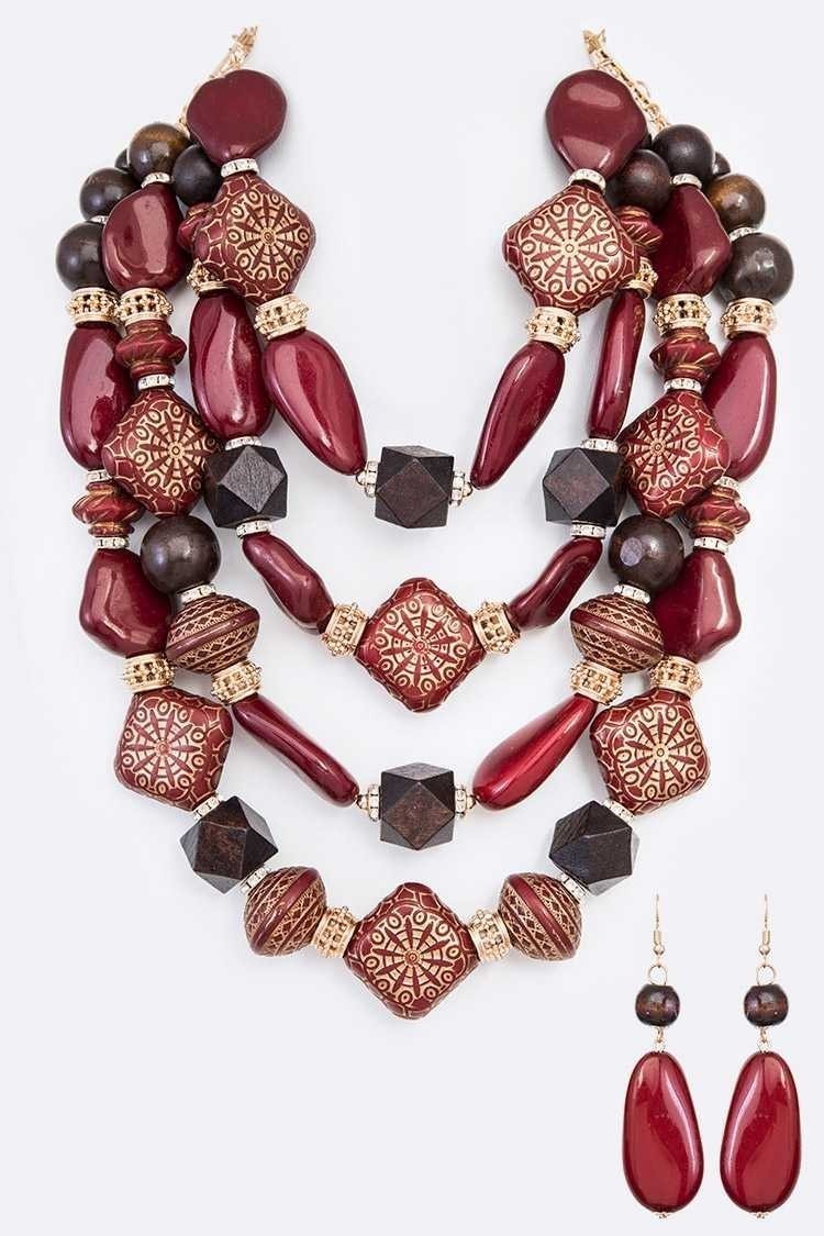 Glam Mix Wooden Beads Statement Necklace Set