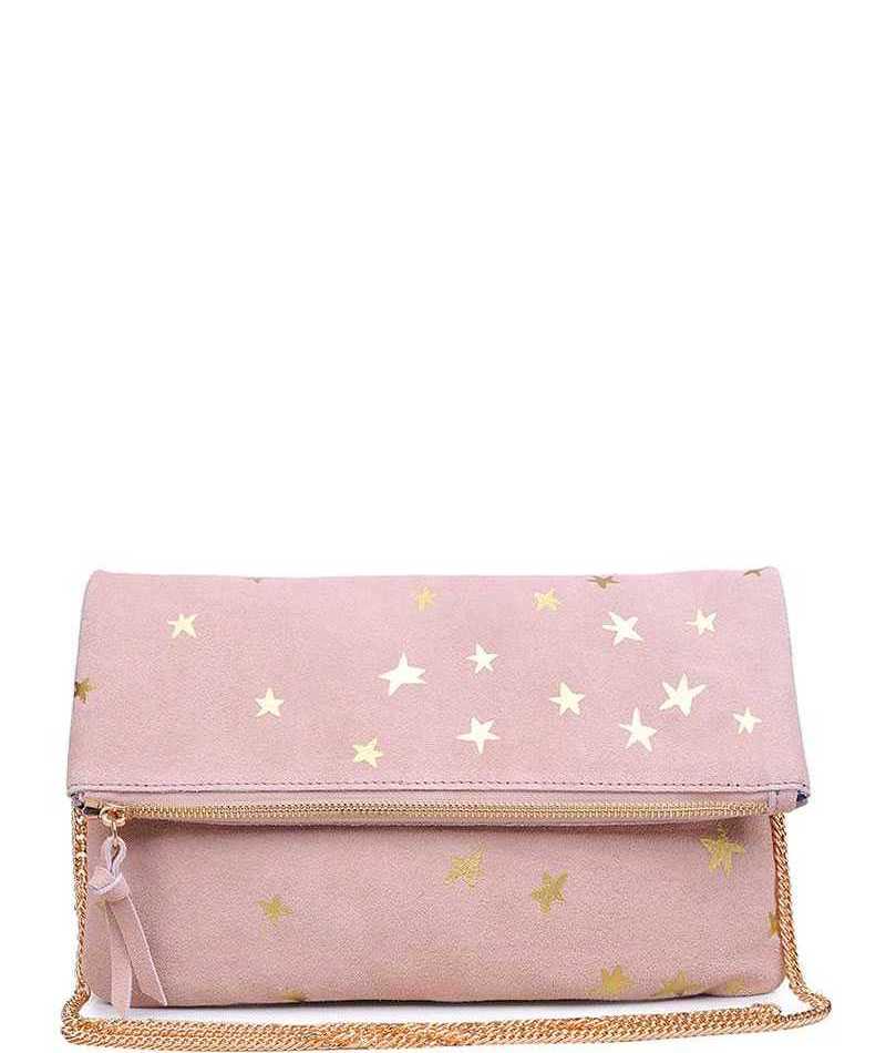 GLITTERY STARRED LUXURY NORTH CLUTCH BAG WITH SLING CHAIN