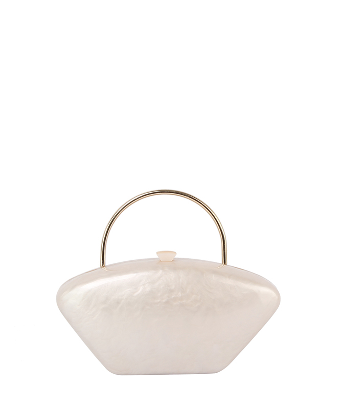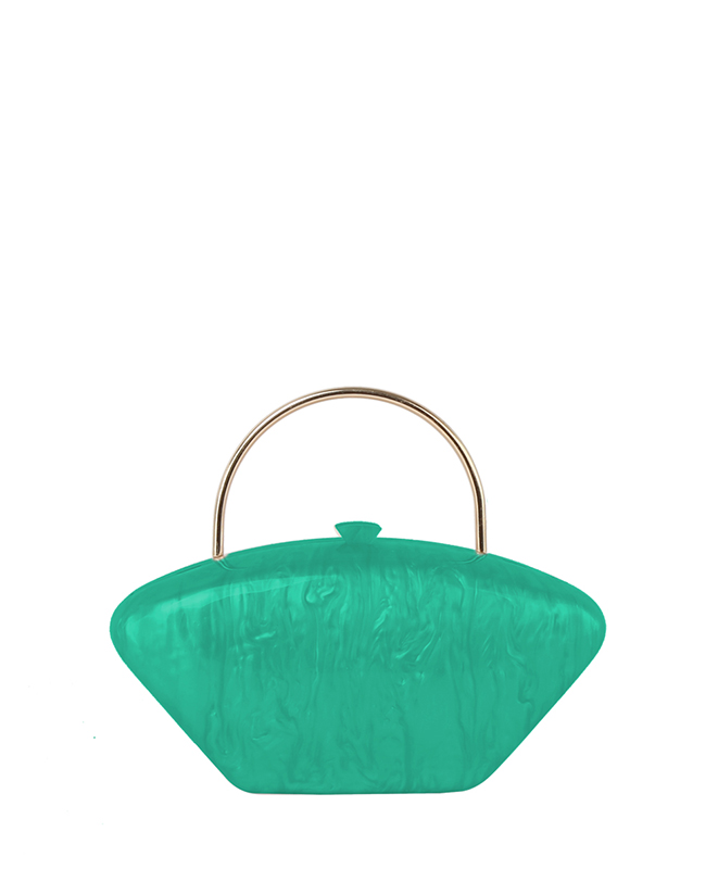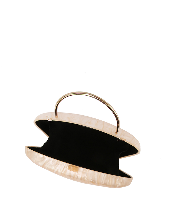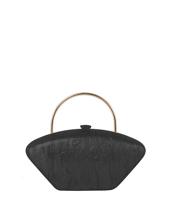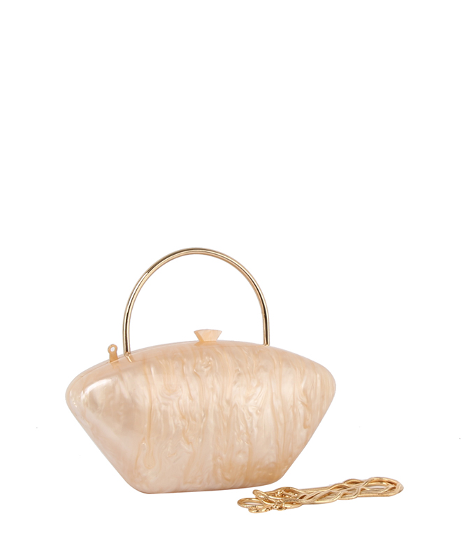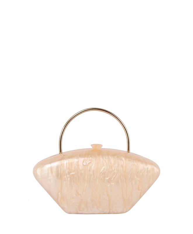 - Golden Top Handle Marble Clutch Evening Bag