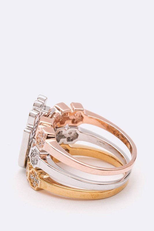 Hamsa Cubic Zirconia Tri-Tone Ring Set Hamsa CZ Tri-Tone Ring Set